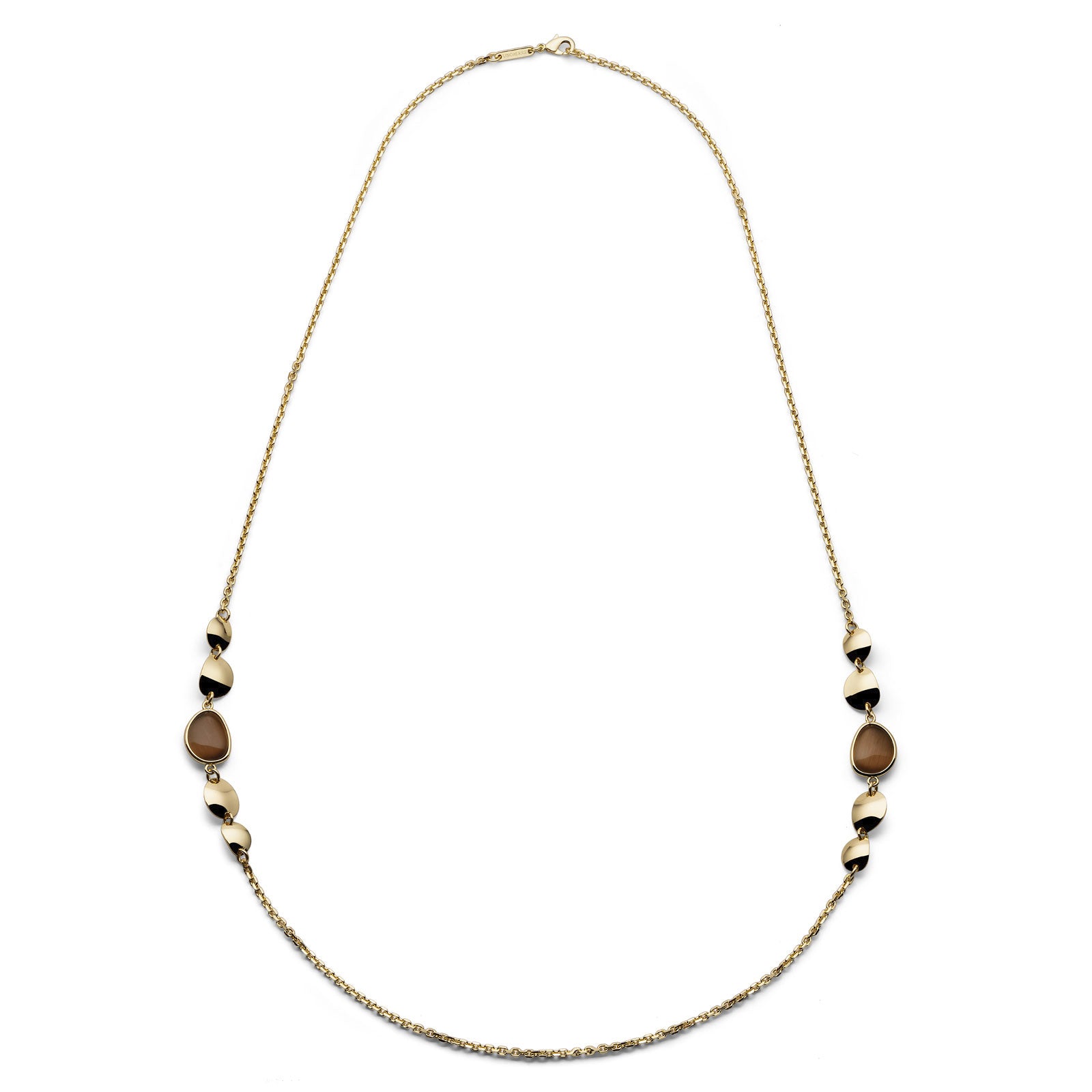 Questa collana lunga in catena fine dorata, lunga 87 cm, unisce eleganza e carattere grazie agli elementi lisci alternati alle pietre occhio di gatto, dal colore intenso. La chiusura a moschettone garantisce sicurezza e praticità, mentre il design sottile e luminoso valorizza ogni dettaglio. Perfetta per chi cerca un gioiello iper femminile e dal fascino magnetico, questa creazione della collezione Gipsy aggiunge un tocco di energia magica e uno stile unico a ogni outfit.