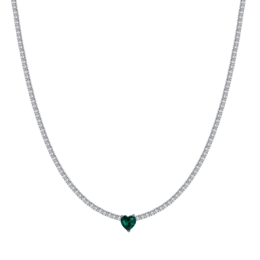 Collana tennis in acciaio con cristalli bianchi e cuore in cristallo verde